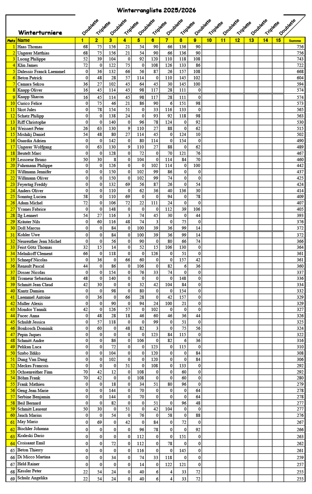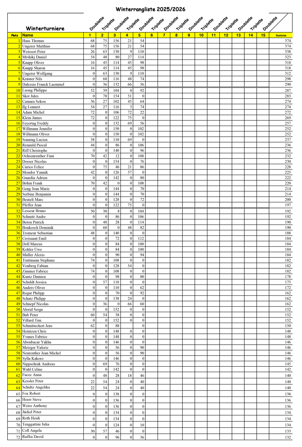 Anmeldung zur Winterturnierserie 2025/26 ab 18. Oktober 2025 bis 14. März 2026